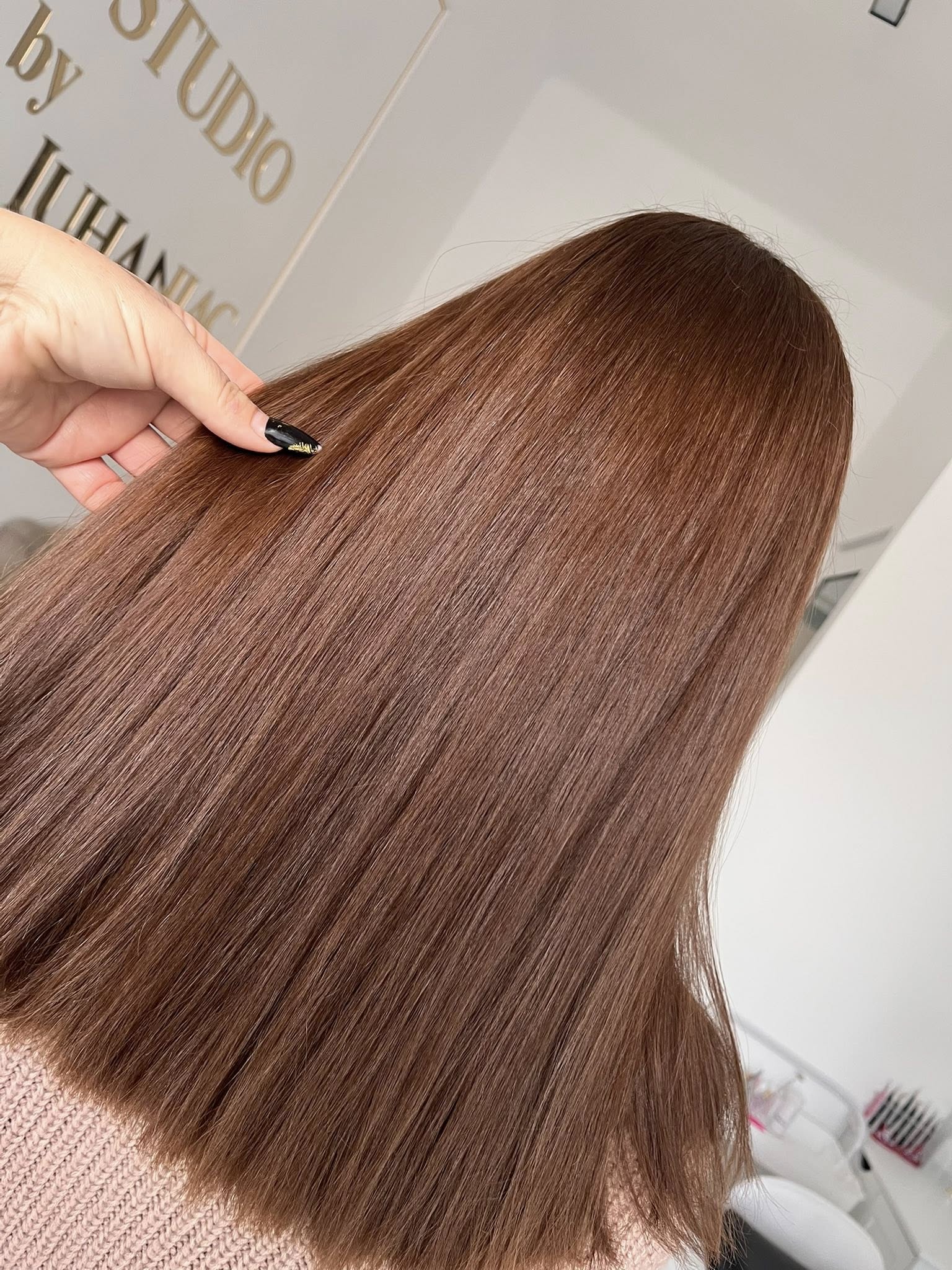 “The chocolate tone is gorgeous! It’s smooth, shiny, and looks just like the picture I showed my stylist. Couldn’t be happier with it.”